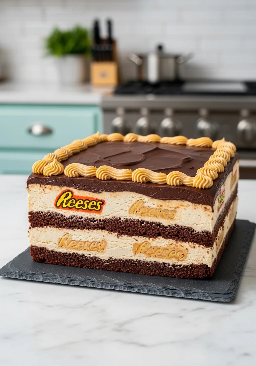 A no‑bake, indulgent cake layered with chocolate, peanut butter, and a crunchy cookie crust that melts in your mouth.
